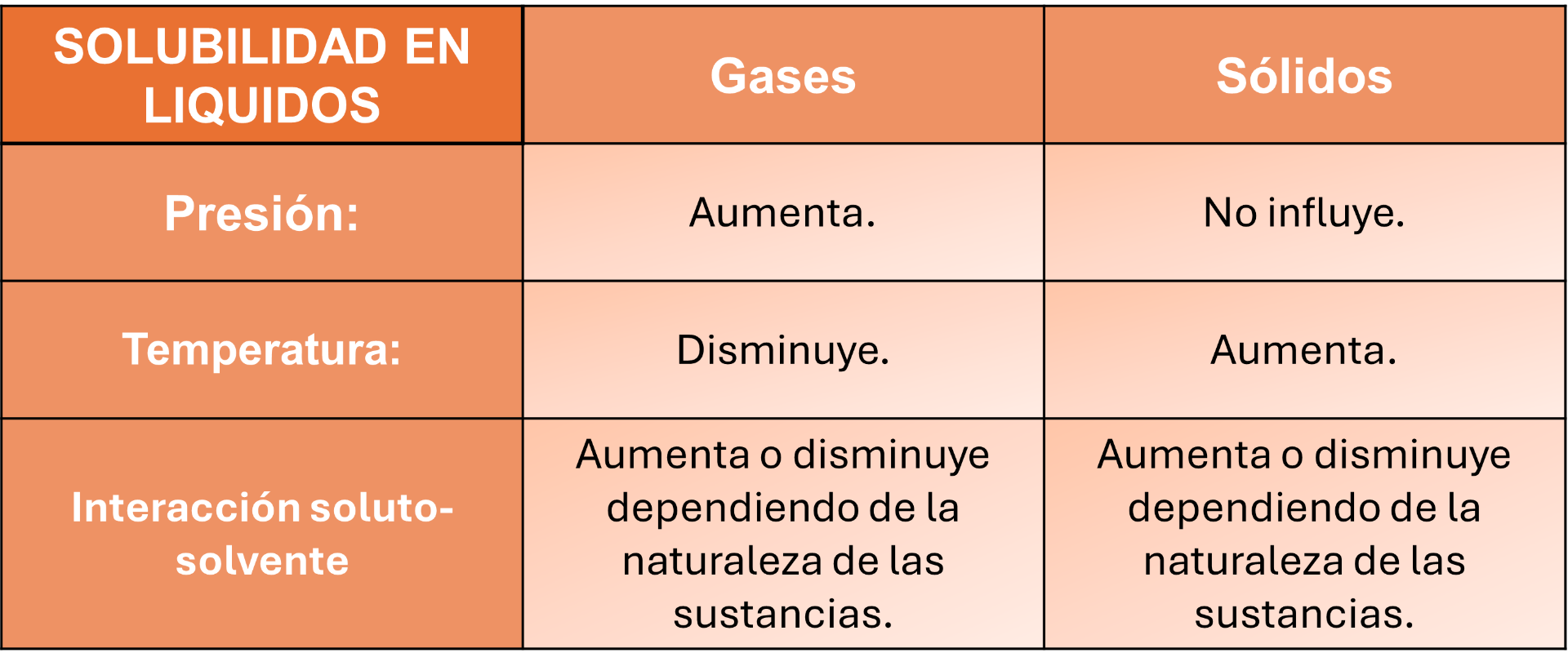 La solubilidad es la cantidad máxima de soluto que puede ser disuelto en cierta cantidad de disolvente a una temperatura específica. Para poder calcularla, se dividen los gramos de soluto en 100 mililitros de agua. Existen principalmente tres factores que la modifican y que actúan de manera distinta dependiendo del tipo de soluto.